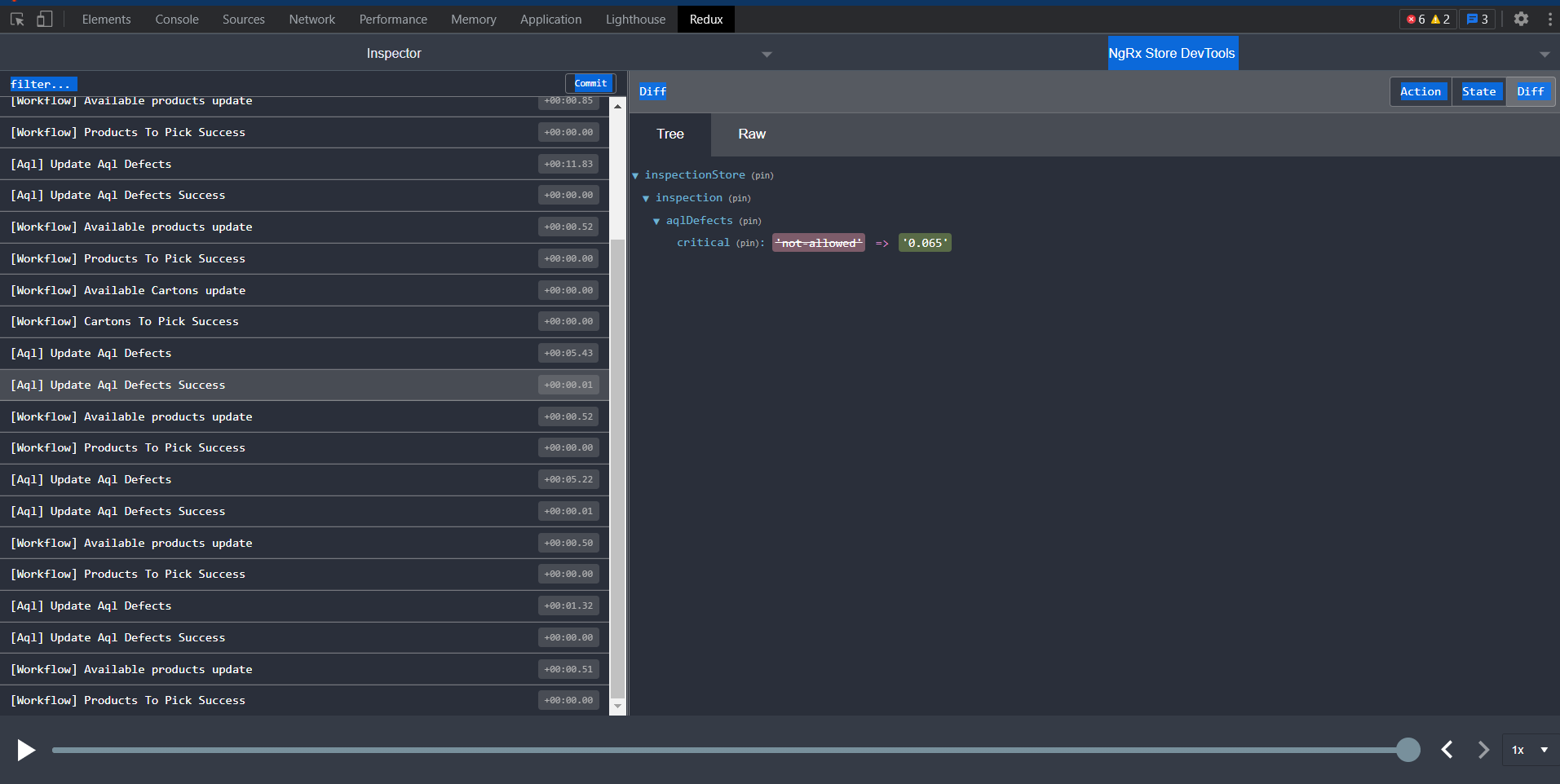 );In the example above, the reducer is handling an update AQL defects action. Action handles the state transition immutably.