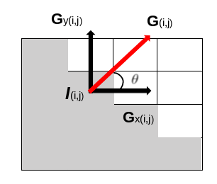\[G = \sqrt{G_x^2 + G_y^2} \ \ \ \ \ \Theta = atan \left(\frac{G_y}{G_x} \right) \]