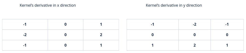 A continuous partial derivative approximation in the x and y directions can be computed by convolving the image with appropriate kernels.