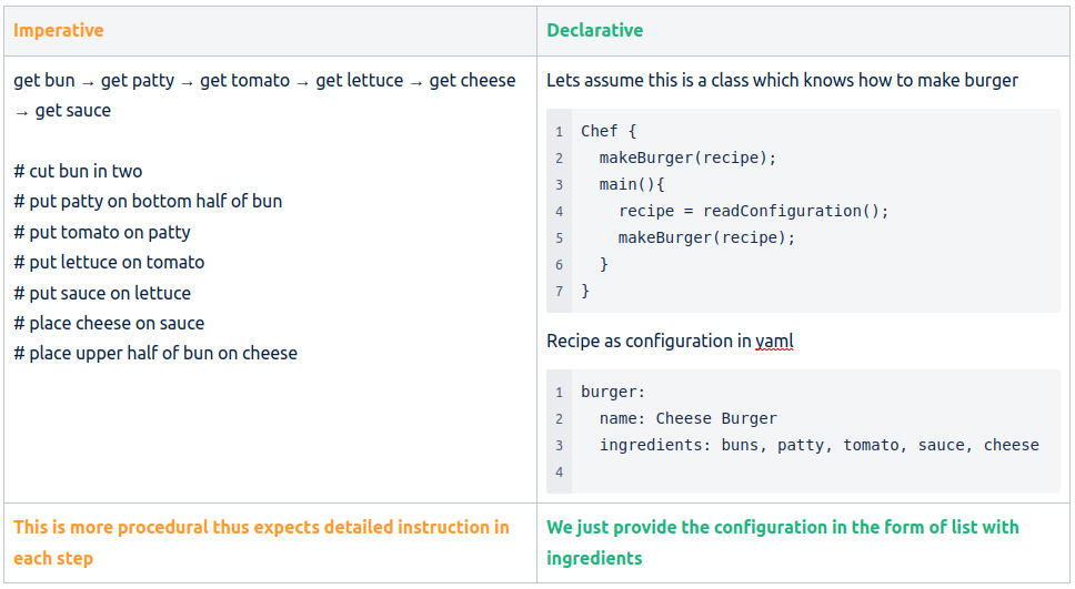 Imperative way is more procedural and Declarative is more configurable.