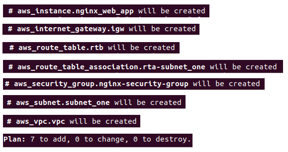 terraform plan -out first_web_app.tfplanThis will save the plan to first_web_app.tfplan.