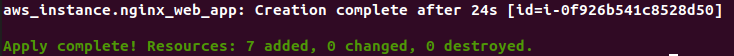 terraform apply “first_web_app.tfplan”This is how it completes and we can see that the web-app has been created and 7 resources has been added