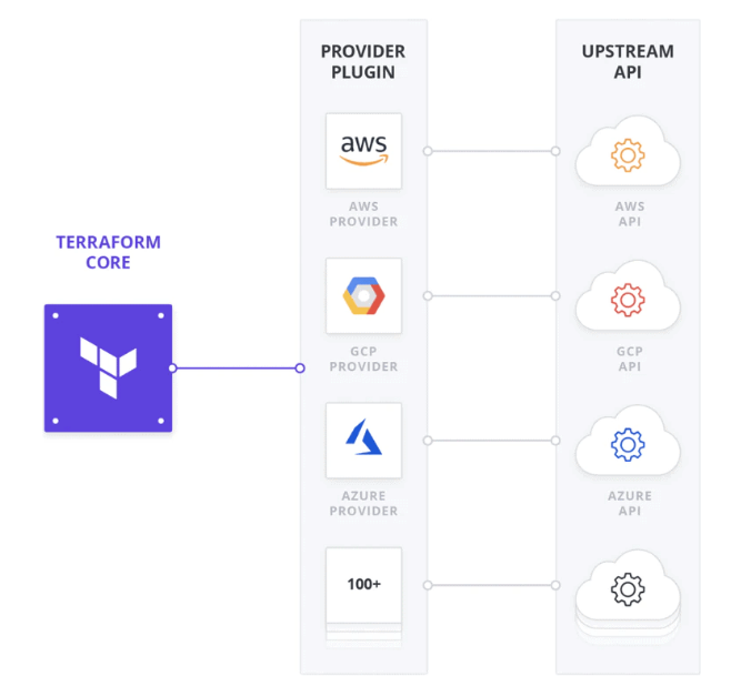 Terraform is primarily used as a tool to provision infrastructure on cloud platforms like AWS, GCP, etc. Providers are the plugins which help to provision infrastructure on a particular cloud platforms of which the provider is being configured. Every supported service has a provider that defines which resources are available and performs API calls to manage those resources.