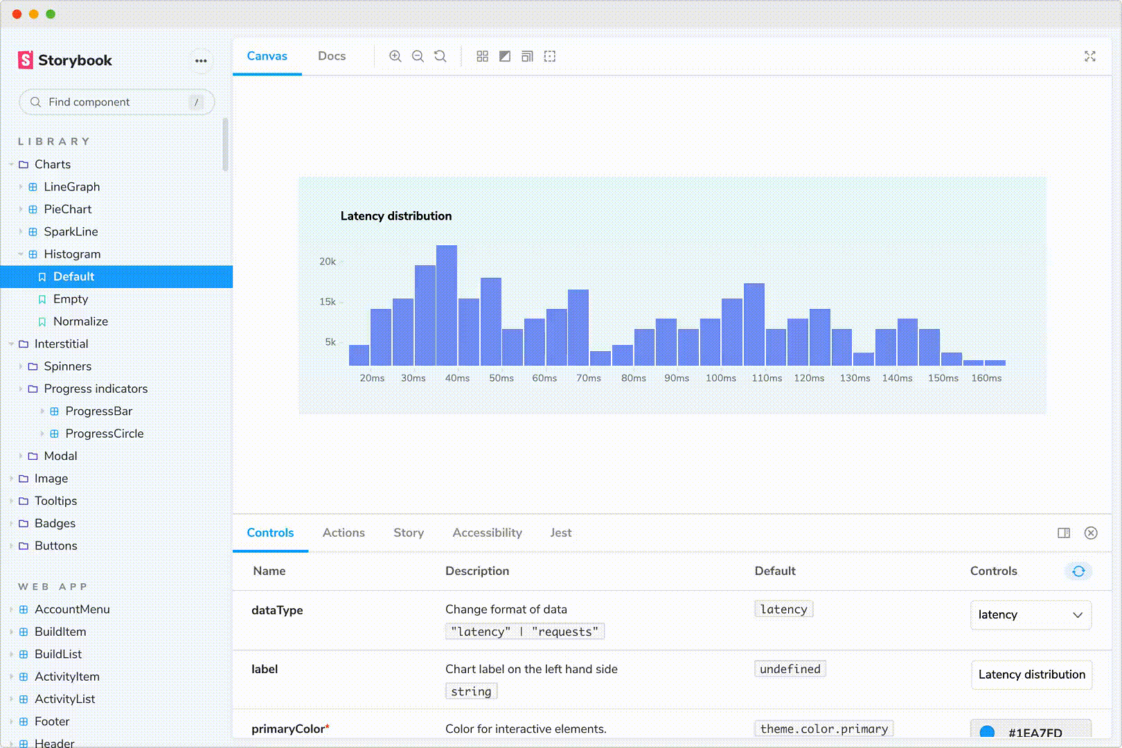 Well, that was our initial thoughts regarding the tool, but we quickly realized that it could also benefit from outside the dev team. The first thing we did was to include Storybook in our CI, so it has its dedicated task and deployment on an internal website; this means that anyone in our team (dev, product, QA, project manager, …) can check the current state of our library, see how every component behaves.